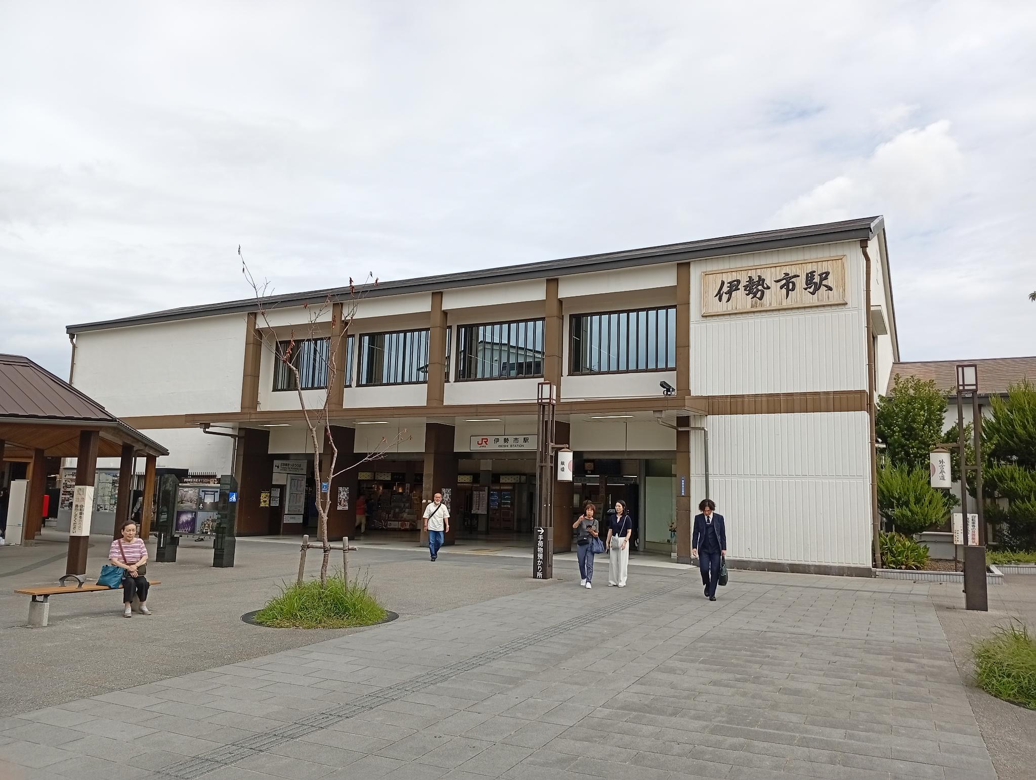 さて、思ったより小さめだった伊勢市駅(1)を出発して今日は愈々神宮にお参りする。内宮より先に外宮にお参りするのが習わしらしいが、伊勢市駅前に宿泊したので外宮は徒歩圏内だ。ロータリーにある鳥居(2)をくぐってそのまま真っすぐ進めばよい。観光案内所を右に見て大通りの外宮前の信号(3)を渡れば正面入り口となる。外宮は、内宮に祀られる天照大御神の食事を司る神として、約1500年前(内宮創建の約500年後)に創建された。