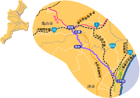 伊勢別街道は、関宿東追分から津市芸濃町椋本(むくもと)、津市一身田(いっしんでん)を通り、伊勢街道と合流する江戸橋までの総距離およそ四里二六町の街道。日本の政治の中心が大和にあった頃には、大和から伊賀を通って伊勢に至る主要ルートでもあった。また、一般の参宮者も通ったとされる古くからの歴史ある街道である。